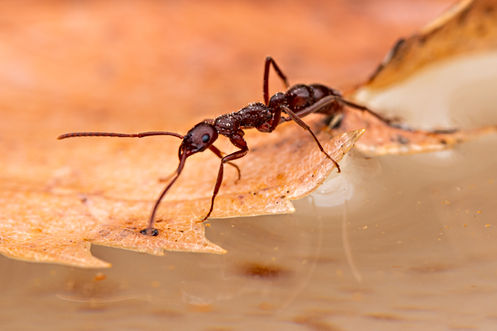 Leptogenys elongata worker attempts to dispatch her isopod prey.